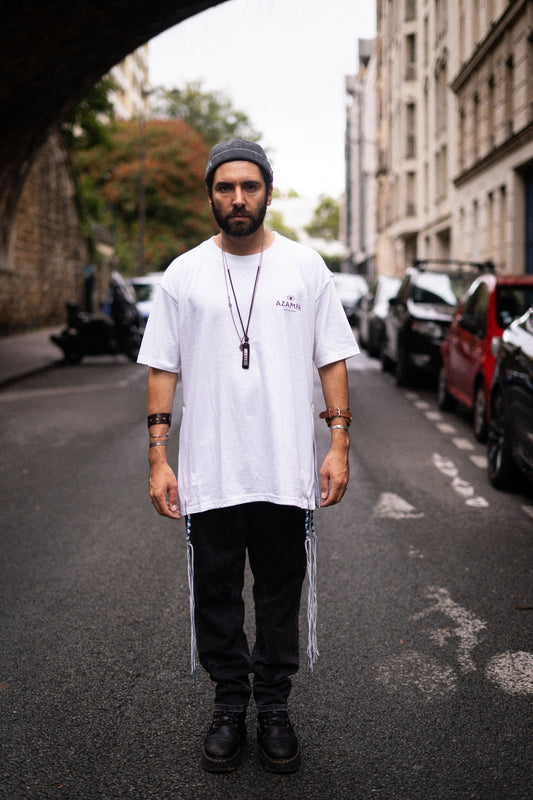 Ce modèle signature porte notre logo avec l'oeil, symbole fort de la marque. Il s’inspire de l’enseignement de Rabbi Na’hman qui nous invite à voir le bien en nous et chez les autres. L'oeil rappelle aussi les mots du Chéma Israël : « Vous les verrez et vous vous souviendrez » car les tsitsit sont là pour nous reconnecter à l’essentiel.