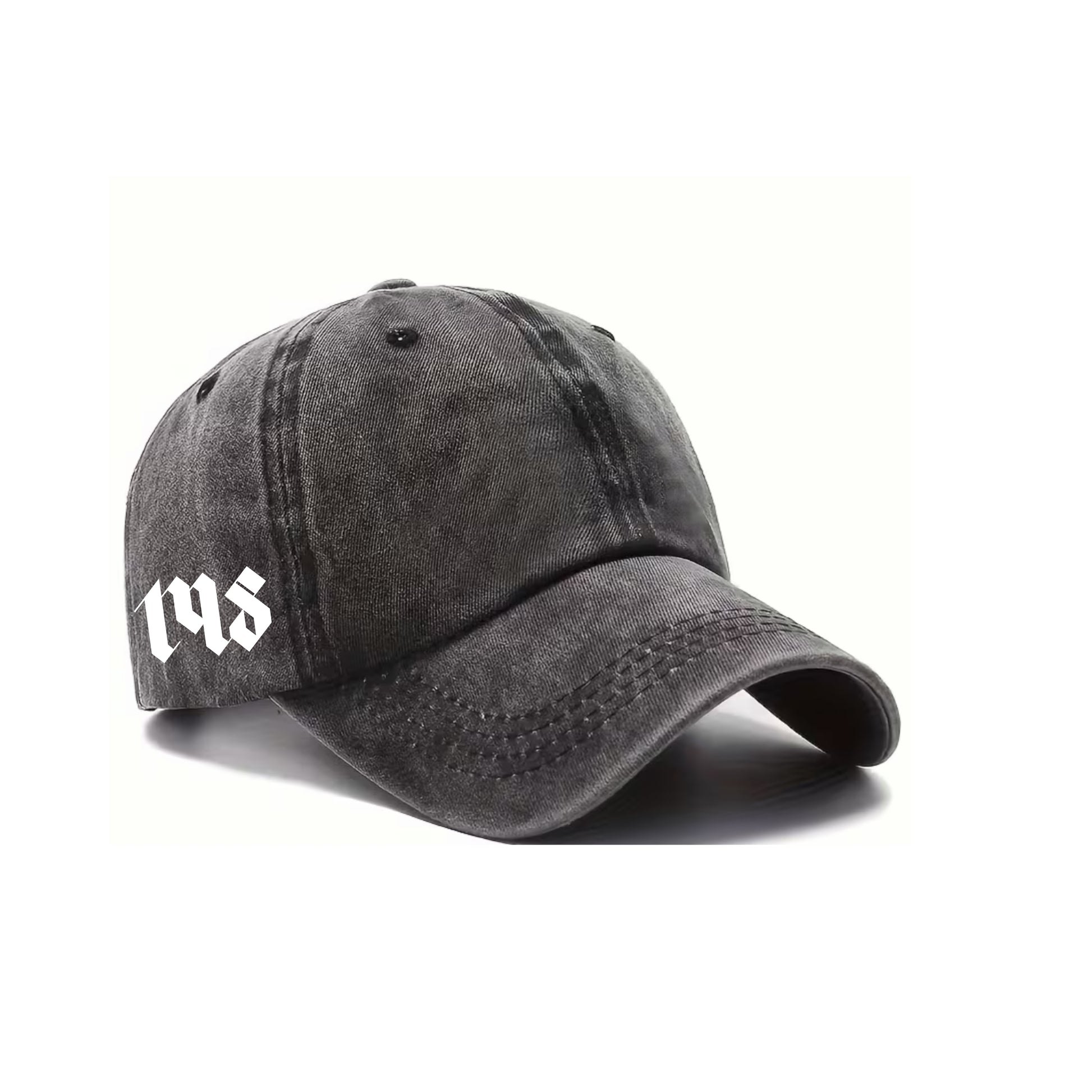 Casquette effet délavé avec impression sur les côtés des logos AZAMRA et 148 en écriture gothique.