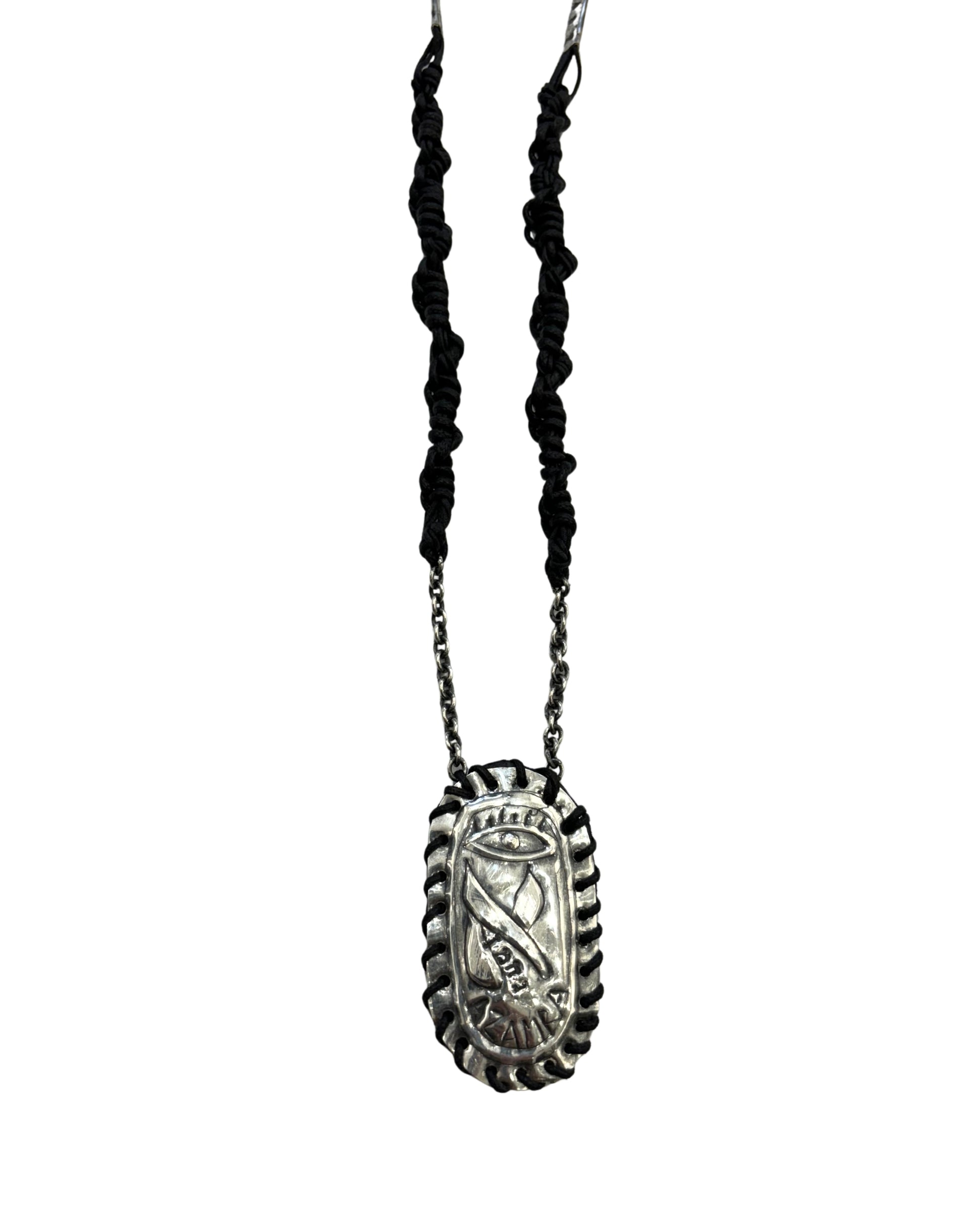 Chaque pendentif renferme le Petek original dans un compartiment discret. Sur la plaque en métal argenté sont gravés AZAMRA et NAHMAN, rappelant la force de la parole positive.